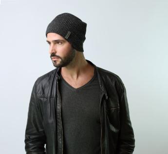 Beanie aus doppellagiger Jersey-Wolle gestrickt. Gesprenkeltes Anthrazitgrau, sein leicht distressed Look verleiht ihm mehr Charakter und Zeitlosigkeit. Die unverzichtbare Beanie ist hier mit einem Revers für eine gute Passform versehen. Ein Lederabzeichen verstärkt seinen Vintage- und traditionellen Charakter.
