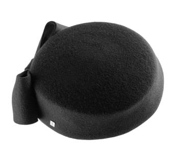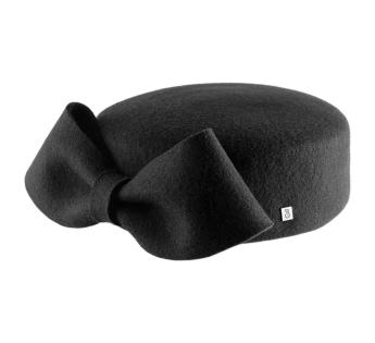 Ein Unterschriftstück der Damengarderobe, dieser Wollfilz-Tamburin-Hut verkörpert die französische Raffinesse in all ihrer Pracht. Seine flache Kappe, schlicht und elegant, wird durch eine übergroße Ton-in-Ton-Schleife hervorgehoben, die ihm einen retro, schicken und ultra-femininen Touch verleiht. Ein Accessoire, das dazu gedacht ist, eine Silhouette mit Anmut zu verschönern, ohne jemals zu übertreiben.