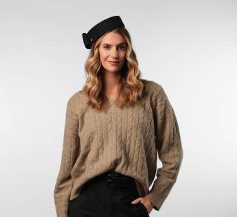 In unserem Atelier in Lyon kreiert und gefertigt, zeugt dieses Modell von außergewöhnlichem handwerklichem Können. Jedes Detail, vom Volumen der Schleife bis zum perfekten Halt des Filzes, wird sorgfältig geprüft. Leicht geneigt getragen, verfeinert es die Haltung des Kopfes und unterstreicht die Persönlichkeit. Ein kühner zeitloser Klassiker, ebenso elegant wie unvergesslich.