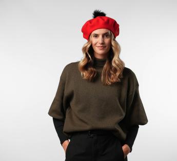 Gefertigt aus reiner Merinowolle, ist diese Französische Baskenmütze mit einem verspielten Pompon verziert, der einem neu interpretierten Klassiker eine Prise Fantasie verleiht. Der tiefschwarze Kunstfell-Pompon kontrastiert mit der lebendigen Farbe des Filzes.