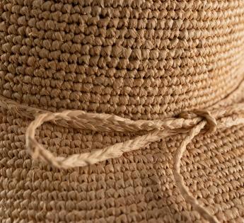 100% Raphia-Stroh, eine Naturfaser, die für ihre Leichtigkeit und ihren authentischen Charme geschätzt wird.