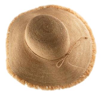 Dieser Hut verkörpert alles, was schöne Sommertage ausmacht. Er erinnert an sanftes Licht, spontane Ausflüge und jene femininen Silhouetten, die mühelos elegant wirken. Seine flexible Linie, die ausgefranste Krempe und der boho-chic Geist verleihen ihm eine leichte, natürliche und charmante Präsenz.