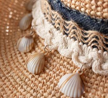 Mit Muscheln oder Perlen verziert, spiegelt er zwei Sehnsüchte desselben Sommers wider. Mehr Krempe am Meer, oder zart und kostbar.
