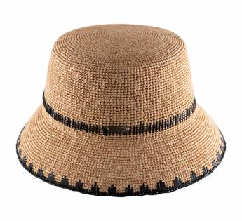 Dieser Fischerhut aus Raphia-Stroh verkörpert eine entspannte, sonnige Ausstrahlung—zwischen Strand, Terrasse und Ausflügen, die bis zum Sonnenuntergang andauern. Sein Spiel der Kontraste und farbige Akzente verleihen ihm Tiefe und einen gepflegten, lässigen Charme.