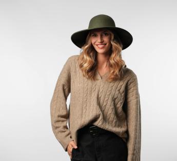 Schlichtheit und Eleganz zeichnen diesen Schlapphut aus Filzwolle aus, mit einem minimalistischen Design und ohne Verzierung. Seine runde Kopfhöhe und die breiten Krempen schaffen eine fließende Silhouette voller Anmut. Hergestellt in Italien, bietet er eine schöne Struktur und bleibt dennoch flexibel und angenehm zu tragen.