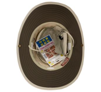 Wasserabweisender Travellerhüte, perfekt für den Außenbereich mit seinem robusten und atmungsaktiven Design. Der obere Teil der Kopfhöhe enthält ein Netzband zusätzlich zu den Belüftungsösen, was seine Atmungsaktivität verstärkt. Ein abnehmbarer Nackenschutz optimiert den vollständigen Schutz vor Sonnenstrahlen.