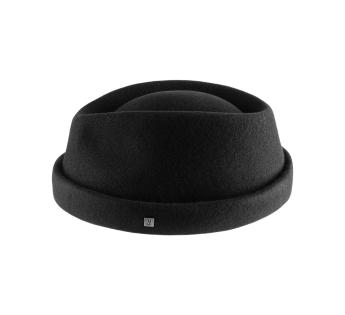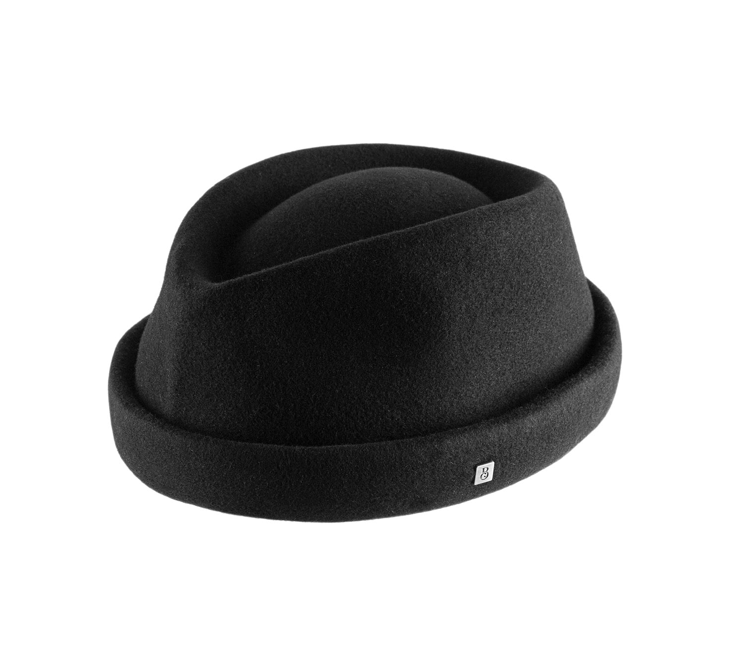 Gefertigt aus Wollfilz, bietet dieses Modell einen stabilen und komfortablen Sitz, mit einer markanten Kopfhöhe und einem breiten, sauberen Revers. Ein handwerkliches Stück, das entworfen wurde, um eine zeitgenössische Silhouette mit Charakter und Präzision zu begleiten.