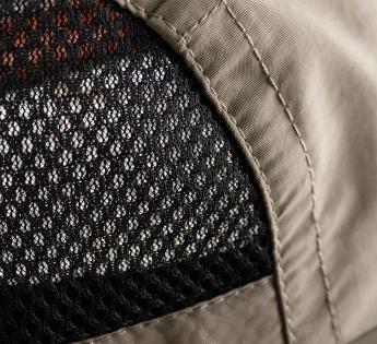 - Seitliche Paneele aus atmungsaktivem, dezent gestepptem Mesh, fördern eine optimale Luftzirkulation und erhöhen den Tragekomfort.