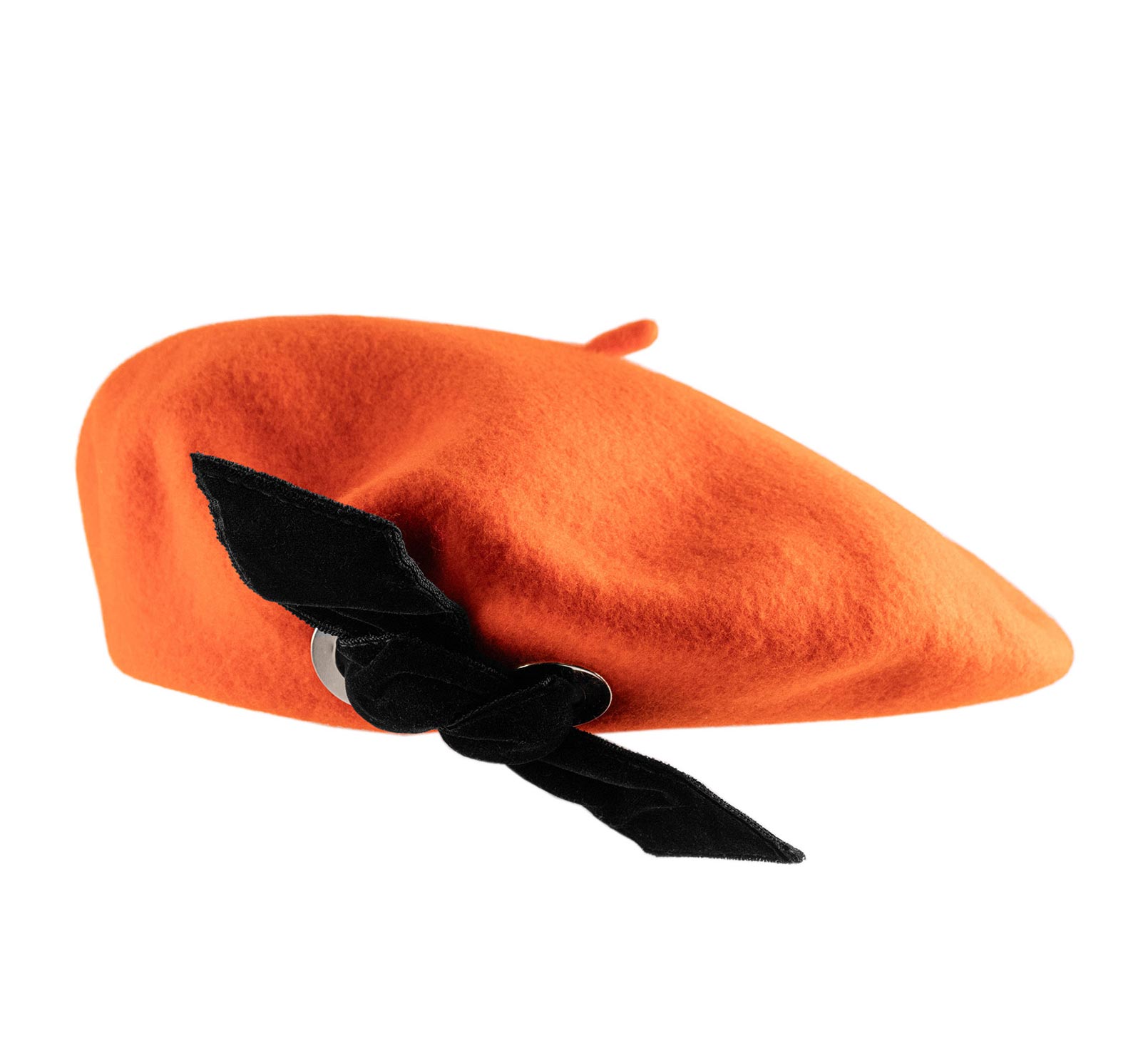 Dieses neu interpretierte Béret spielt mit Kontrasten mit Kühnheit und Raffinesse. Seine baskische Form, mit einem mittleren Schnitt, wird durch ein Duo aus starken Details verdreht: eine handgeflochtene Samtschleife und zwei metallische Ösen, die die Silhouette modernisieren. Ein subtiler Ausgleich zwischen Tradition und Design, gedacht für einen selbstbewusst femininen Look.