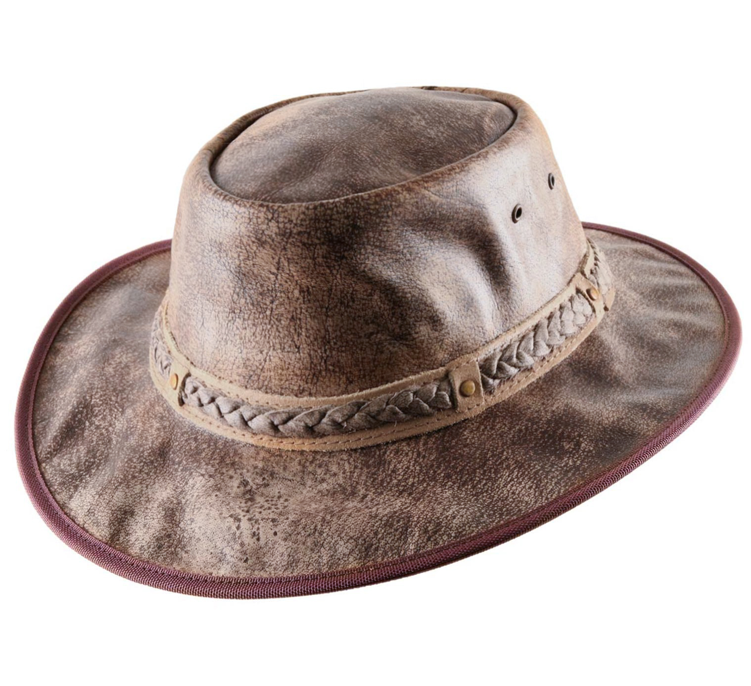 Weiches Leder, faltbarer Hut, der in einem Koffer oder einer Tasche verstaut werden kann.