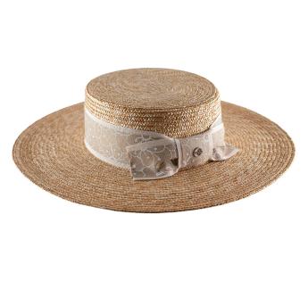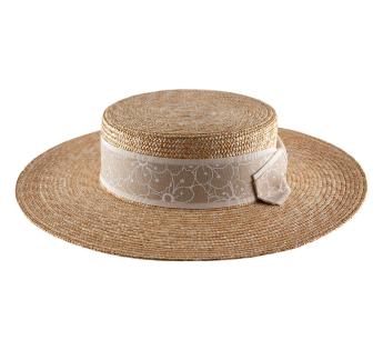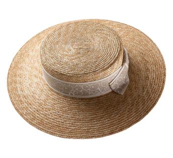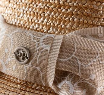 Dieser Boater Kreissäge aus Stroh besticht durch seine elegante Linie und den leuchtend natürlichen Farbton. Der Galon, mit einem klaren floralen Motiv bedruckt und durch ein passendes Ripsband betont, hebt die Kopfhöhe dezent hervor, während die Schleife am Hinterkopf dem Hut eine besonders raffinierte Note verleiht.