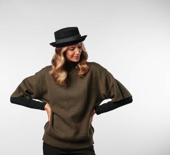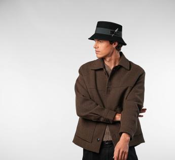 Er kann auf verschiedene Arten getragen werden: mit herunterhängender Krempe für einen schlichten Stil oder mit Krempe erhoben für einen gewagteren Look. Unisex und vielseitig, passt dieser Hut sowohl zu einer weiblichen als auch männlichen Garderobe. Ideal für diejenigen, die eine markante Kopfbedeckung suchen, die sowohl elegant als auch entschieden modern ist.