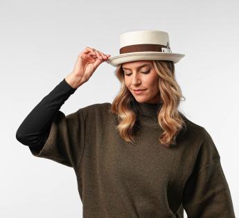 Er kann auf verschiedene Arten getragen werden: mit herunterhängender Krempe für einen schlichten Stil oder mit Krempe erhoben für einen gewagteren Look. Unisex und vielseitig, passt dieser Hut sowohl zu einer weiblichen als auch männlichen Garderobe. Ideal für diejenigen, die eine markante Kopfbedeckung suchen, die sowohl elegant als auch entschieden modern ist.