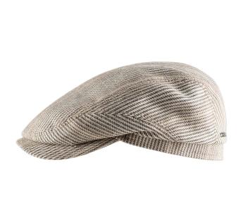 Flatcap von Stetson. Sein Stoff, in Irland gewebt, vereint Baumwolle, Leinen und Seide, um ein edles Material mit zartem Griff und luftiger Leichtigkeit zu bieten. Die feinen diagonalen Streifen verleihen eine subtile visuelle Dynamik.