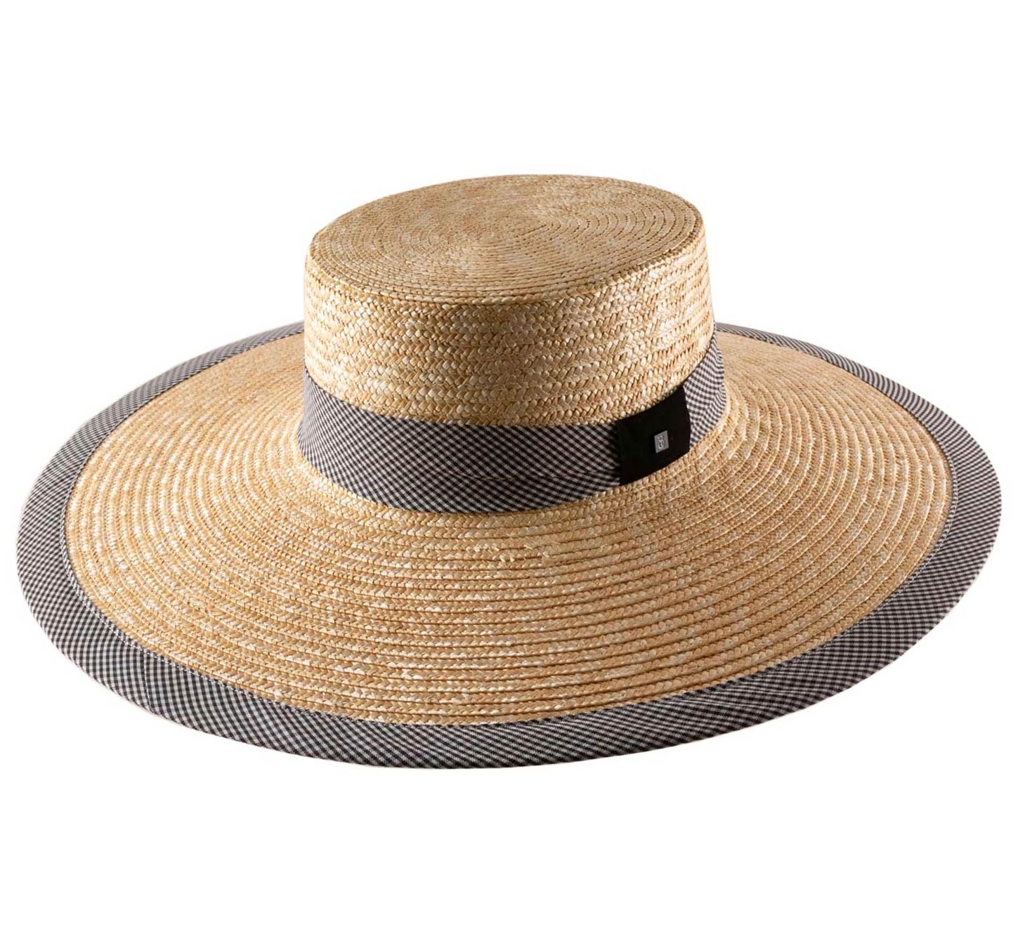 Hut mit breiter Krempe aus genähtem Stroh. Sein schwarz-weißes Gingham-Galon wird auch am Rand aufgegriffen, um einen klassischen, schicken und zeitlosen Akzent zu setzen, dank eines zeitlosen und grafischen Musters. Diese originelle Personalisierung bestätigt sein einzigartiges Design und gibt dir die Möglichkeit, eine große Vielfalt an stilvollen, lässigen oder eleganteren Looks zu kreieren.
