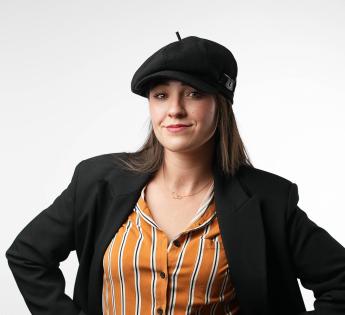 Diese Cap wagt eine kühne Neuinterpretation der Codes. Der obere Teil wurde absichtlich geneigt, um die Geste des Béret zu evozieren, subtil zur Seite geneigt. Dieses Schnittdetail, alles andere als trivial, schafft eine asymmetrische Linie voller Anmut, die die Haltung dynamisiert und eine echte Persönlichkeit betont. Das weite Volumen bietet Struktur und Komfort, während die gut gehaltene Krempenbreite das Ganze in einem beherrschten urbanen Stil verankert.