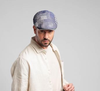 Diese Flatcap, gefertigt in Italien, vereint die Leichtigkeit von Leinen mit einer kühnen Ästhetik. Ihr Stoff, der écru und blaue Fäden mischt, bietet eine Abwechslung von Mustern, die das Auge mit ihren wechselnden Reflexionen fesseln.