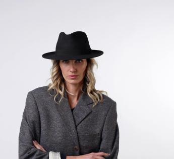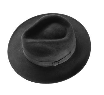 Hut für gentlemen traveller aus flexiblem Filz, weich und bequem, was ihn zu einem perfekt warmen Accessoire für den Winter macht. Er wird schlicht durch ein Band aus Verzierung aus Satin aufgewertet.