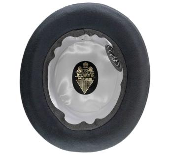 Verziert mit einem dezenten Grosgrain-Galon, spielt er die Karte der Raffinesse ohne Übermaß. Perfekt für Zeremonien, anspruchsvolle Stadtkleidung oder von Dandy inspirierte Silhouetten, überdauert dieser Hut die Epochen mit Adel und Unterscheidung.