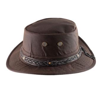 Travellerhüte, die für das Wandern aus wasserabweisendem gewachstem Stoff gefertigt sind. Er hat ein trendiges Trapperdesign, das uns effektiv vor den Launen des Wetters schützt. Praktisch ist er mit einem Kinnriemen sowie Belüftungsösen für eine bessere Atmungsaktivität ausgestattet. Er ist mit einem geflochtenen Galon aus Leder verziert, was seinen abenteuerlichen Charakter verstärkt.