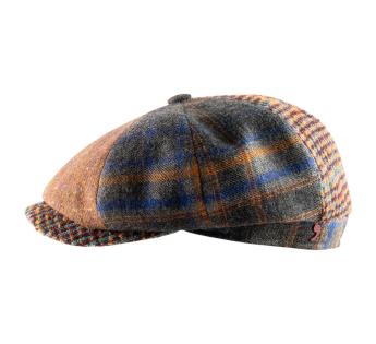 Weite Kappe mit einer Kopfhöhe von 8 Panels, verlängert durch eine breite Krempe. Eine Kreation im Patchwork-Stil mit Karos auf mehreren Bändern aus unberührter Wolle. Sie bietet eine originelle Zusammenstellung mehrerer schlichter, komplementärer und leicht retro Farben, die für jeden unserer Stile geeignet sind.
