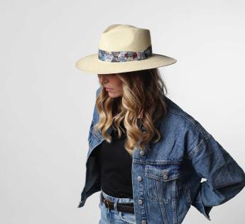 Panamahut mit sehr feiner und leichter Flechtung. Sie sorgt dafür, dass der Kopf gut atmungsaktiv bleibt. Die Finitionen des Modells sind von hoher Qualität für ein hochwertiges Design.