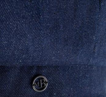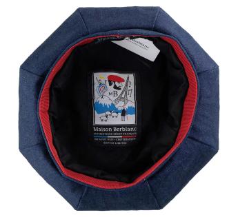 Béret aus 100 % Baumwoll-Denim, ein Material, das sowohl roh als auch elegant ist und Robustheit, Geschmeidigkeit sowie einen ausgesprochen modernen Charakter vereint.