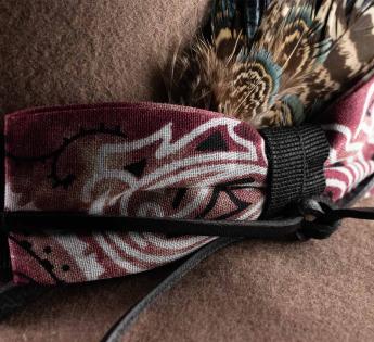 Der Rand ist an der Unterseite mit einem Bandana-Stoff bedeckt, der dezent in Form einer Schleife in der Verzierung wieder aufgegriffen wird, um einen harmonischen Effekt zu erzielen. Entworfen mit einem sorgfältigen Futter und einem bequemen Kopfumfang, vereint dieses Modell hochwertige Materialien und sorgfältige Details und hebt ein einzigartiges handwerkliches Können hervor.