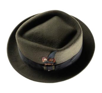 Der PorkPie Hut aus Filz verkörpert die zeitlose Eleganz eines Jazzclubs.