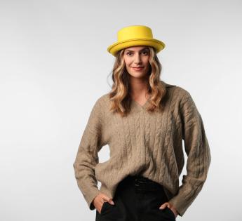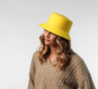 Minimalistisch, grafisch und entschieden trendig: zwischen einer sehr retro kleinen Glocke und einem zeitgenössischen Fischerhüte aus Filz, überarbeitet dieser Hut die Codes mit einer strukturierten und raffinierten Silhouette. Aus gefilzter Wolle gefertigt, ist er von Natur aus wasserabweisend, ideal, um die Jahreszeiten stilvoll zu überstehen.