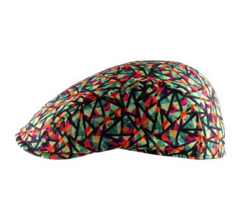 Flachkappe aus einem trendigen Stoff in tropischen Farbtönen und geometrischen Mustern. Der resultierende zeitgenössische Look bietet Eleganz und Stil für gehobene Outfits in allen Situationen. Der weiche Stoff ist durch einen elastischen Kopfeinsatz verstärkt, um zusätzlichen Komfort zu bieten.