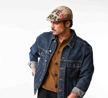 Diese duckbill Cap erzählt eine Geschichte, besitzt Struktur und eine echte Präsenz. Ihre Kopfhöhe aus recyceltem Jutegewebe, gewonnen aus Kaffeesäcken, verleiht ihr einen rauen, einzigartigen und weltoffenen Stil, der durch Leineneinsätze sanft abgerundet wird.
