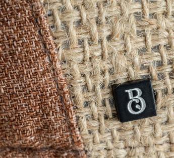 Kopfhöhe aus Jutegewebe, gewonnen aus recycelten Kaffeesäcken, dieses charaktervolle Material besticht durch seine strukturierte Optik, seine schöne Formstabilität und seine Widerstandsfähigkeit.