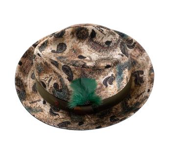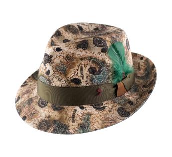 Dieser Player Hüte von Alfonso D’Este ist weit mehr als ein Accessoire, er ist ein Sammlerstück. Sein kartografischer Druck und die Paisley-Motive auf edlem Leinen erzählen von eleganter Reiselust. Mit einer leuchtenden smaragdgrünen Feder und sorgfältigen endet setzt er ein künstlerisches Statement.