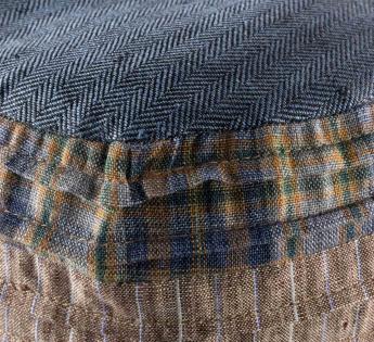 Spiel von Materialien und Mustern für ein Kopfbedeckung, die für den Sommer entworfen wurde und unisex gedacht ist. Es ermöglicht uns, unseren Stil mit Leichtigkeit zu bekräftigen.