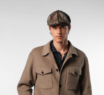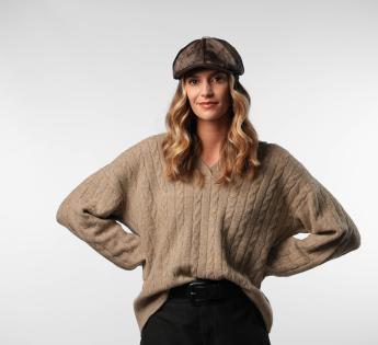 Cap aus echtem Leder, natürliche Optik mit erhaltenem kurzem Haar (auch bekannt als "hair-on leather"). Jedes Stück weist eine einzigartige Textur auf, die von der ursprünglichen Haut geerbt wurde, für ein authentisches und warmes Finish.