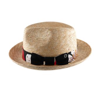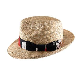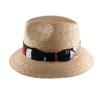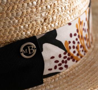 Ein Hut mit vielen Facetten, der im sommerlichen Licht tanzt. Sein Band mit floralen Mustern spielt mit abstrakten, kontrastreichen und farbenfrohen Designs.