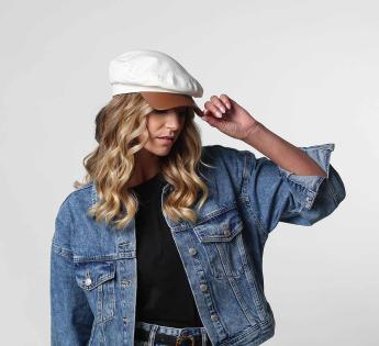 Elegante Elbsegler Kapitänsmütze mit ihrer ikonischen Form. Ihre Kopfhöhe wird durch eine Lederkrempe verlängert. Letztere schafft gleichzeitig einen auffälligen Kontrast.
