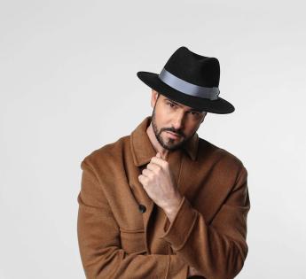 Travellerhüte 100 % französisch. Er wurde in unseren Werkstätten in Lyon aus hochwertigem, seidigem Filz gefertigt. Das Gesamtbild zeichnet sich durch Eleganz und Leichtigkeit aus, während die fächerförmige Kopfhöhe mit einem Satin-Galon verziert ist.