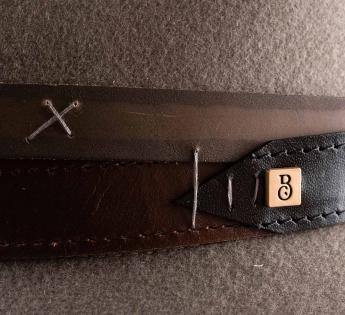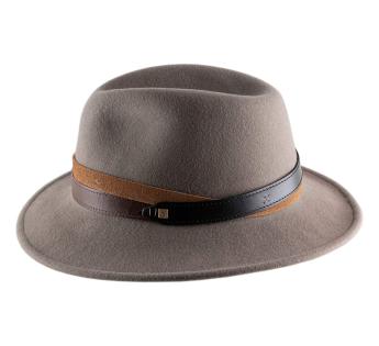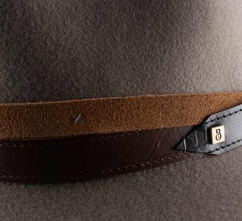 Eine Verbindung von Stil und Charakter, dieser Filzhut zeichnet sich durch seine mehrstrukturierte Lederverzierung aus. Ziernähte, Ton-in-Ton-Stickereien und ein goldenes Label veredeln diesen rohen und eleganten Mix. Wasserabweisend und crushable, begleitet er Sie mühelos, ob in der Stadt oder auf Reisen.