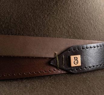 Eine Verbindung von Stil und Charakter, dieser Filzhut zeichnet sich durch seine mehrstrukturierte Lederverzierung aus. Ziernähte, Ton-in-Ton-Stickereien und ein goldenes Label veredeln diesen rohen und eleganten Mix. Wasserabweisend und crushable, begleitet er Sie mühelos, ob in der Stadt oder auf Reisen.