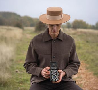 Gefertigt in Italien aus hochwertigem Wollfilz, ist er mit einem in Frankreich hergestellten Galon verziert, das Ergebnis einer Partnerschaft zwischen Handwerkern beider Länder. Dieser Dialog des Handwerks bringt ein Stück hervor, das Tradition und Kühnheit vereint, in einem Stil, der sowohl minimalistisch als auch expressiv ist. Ein Hauch von Andalusien, ein Hauch von Couture, dieser Hut überdauert die Epochen, ohne je seine Anziehungskraft zu verlieren.