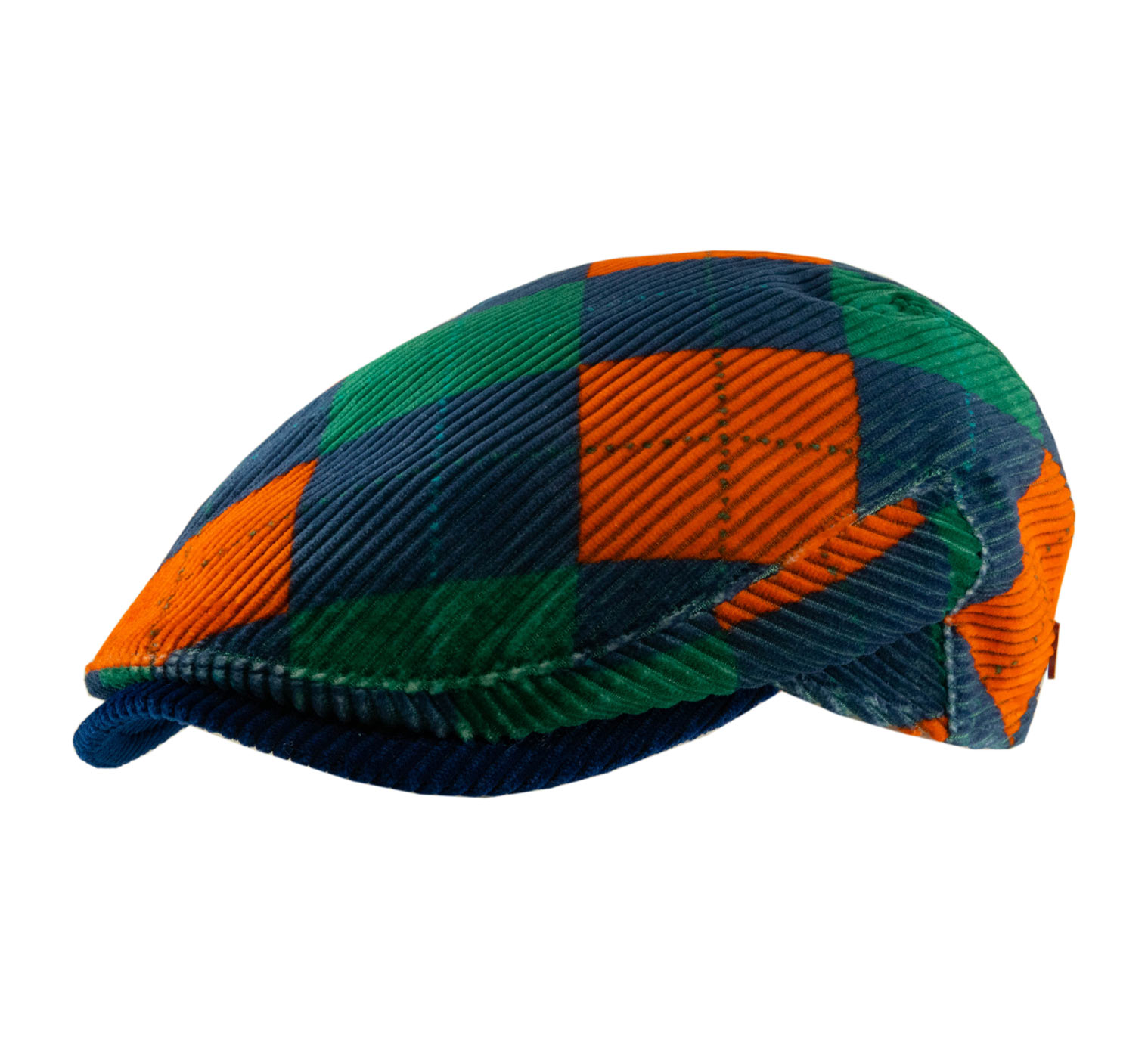 Flatcap mit seidiger Textur, hergestellt aus Cord. Ein Stoff, der heute mit einem bunten und trendigen Karomuster personalisiert ist. Das Muster ist zeitlos, um den persönlichen Stil mit einer eleganten Lässigkeit zu ergänzen. Sein Touch wird wertvoll sein, um die Raffinesse Ihres Outfits auf ein neues Niveau zu heben.
