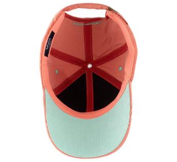 6-Panel-Cap aus dickem Cord-Samt, mit breiter Struktur und flexibler Textur. Ein Material mit einem ausgeprägten Retro-Geist, ideal für die Übergangszeit oder den Winter dank seiner weichen Haptik und natürlichen Wärme.