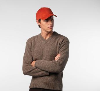 6-Panel-Cap aus dickem Cord-Samt, mit breiter Struktur und flexibler Textur. Ein Material mit einem ausgeprägten Retro-Geist, ideal für die Übergangszeit oder den Winter dank seiner weichen Haptik und natürlichen Wärme.
