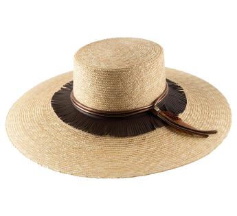 Traditionelle Herstellung aus einem Strohgeflecht, das auf ein Drehkreuz gelegt und genäht wird. Die Finesse und Steifigkeit gewährleisten die Qualität des Hutes, der steif genug sein muss, um den guten Stil und einen rechten Winkel zwischen der Krone und der Krempe beizubehalten.