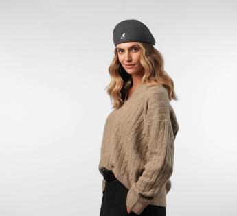 Ein Klassiker von Kangol mit einem Schnitt, der das Tragen auf dem Kopf erlaubt. Dieses Modell, das schmaler ist als das Kangol 504-Modell, lässt dich den Vintage-Hip-Hop-Geist der 90er Jahre neu entdecken. Schlicht und von hervorragender Qualität, schütze dich vor der Kälte mit seinem Känguru, das die Köpfe der größten Stars der Show zierte.