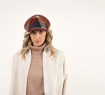 Wintermütze aus einem natürlichen Patchwork warmer Farben. Die Panels folgen einem leicht weiten Schnitt, harmonisch mit einer breiten Krempenbreite. Trendy und perfekt in der Kombination von Eleganz und Lässigkeit, hält die Mütze auch unseren Kopf trocken.