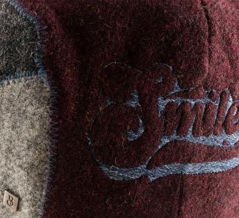 Ein Patchwork aus Materialien und Stil: Diese Flat cap aus Shetland-Schurwolle bietet einen passgenauen und dynamischen Schnitt, der durch ein Spiel aus kontrastierenden Paneelen subtil hervorgehoben wird, durch sichtbare Steppnähte. Auf der Rückseite verleiht eine Stickerei 'Smile' eine starke grafische Note, die auf Anfrage in unserem Atelier in Lyon gefertigt wird.