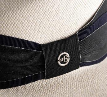 Dieser Panamahüte Montecristi besticht durch sein Grosgrain-Band, raffiniert in zeitlosen Farben, dessen überlagerte Verarbeitung eine subtile Tiefe verleiht. Das asymmetrische Detail, das am Hinterkopf hervortritt, bringt eine moderne Dynamik in diese klassische Silhouette, signiert mit einem gebürsteten silbernen Badge.